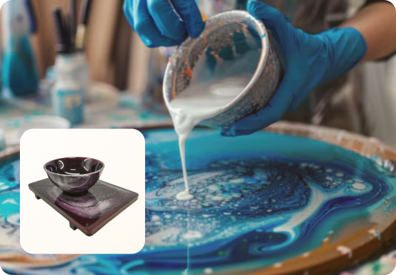 Premium liquid resin is poured and cured under controlled conditions for a flawless, crystal-clear finish.
